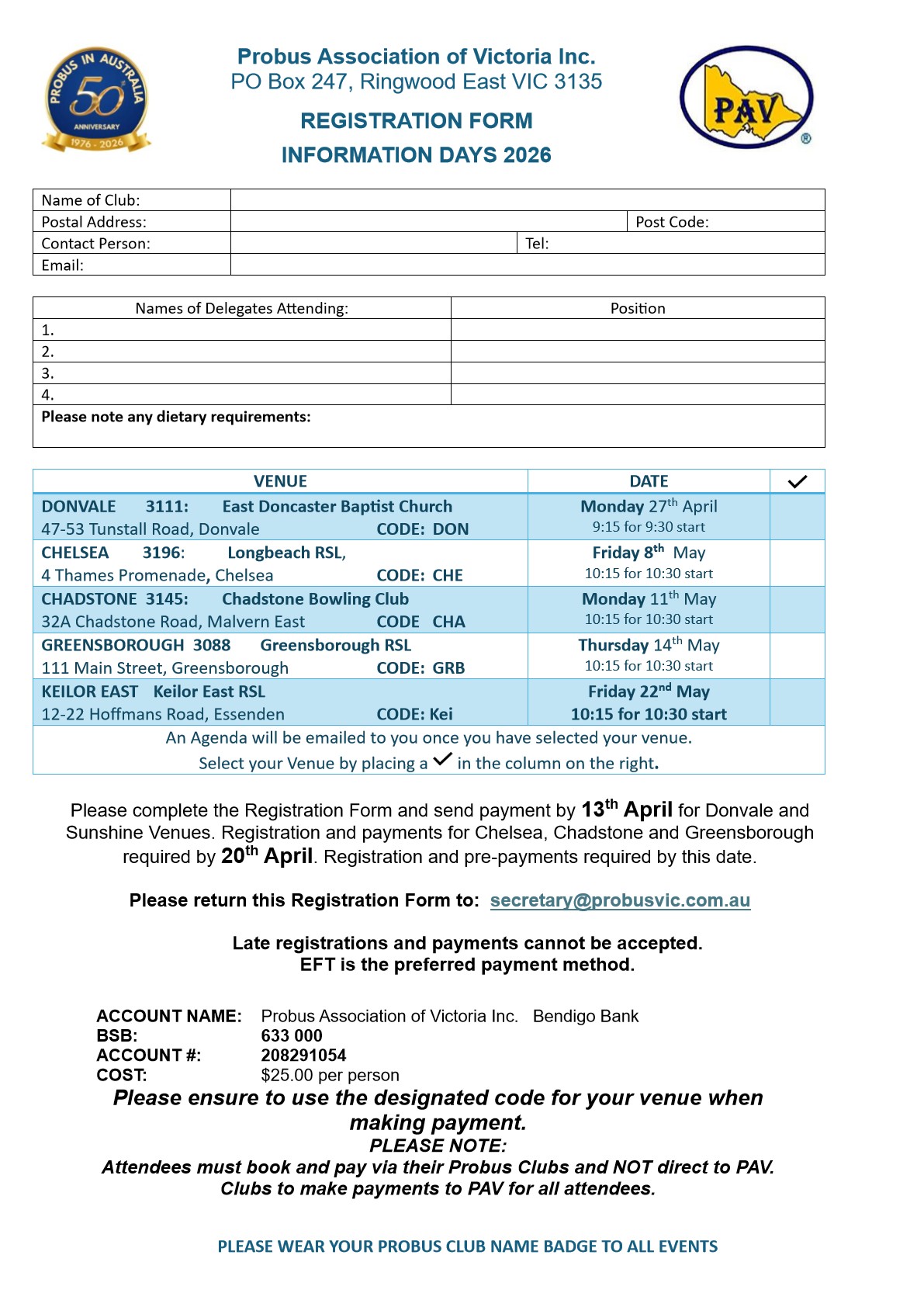 PAV Affiliation Form 2026